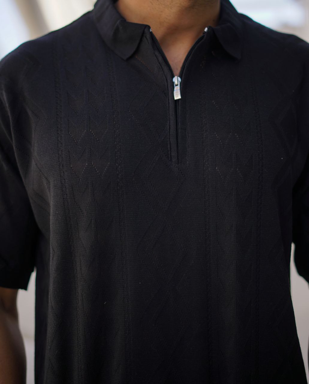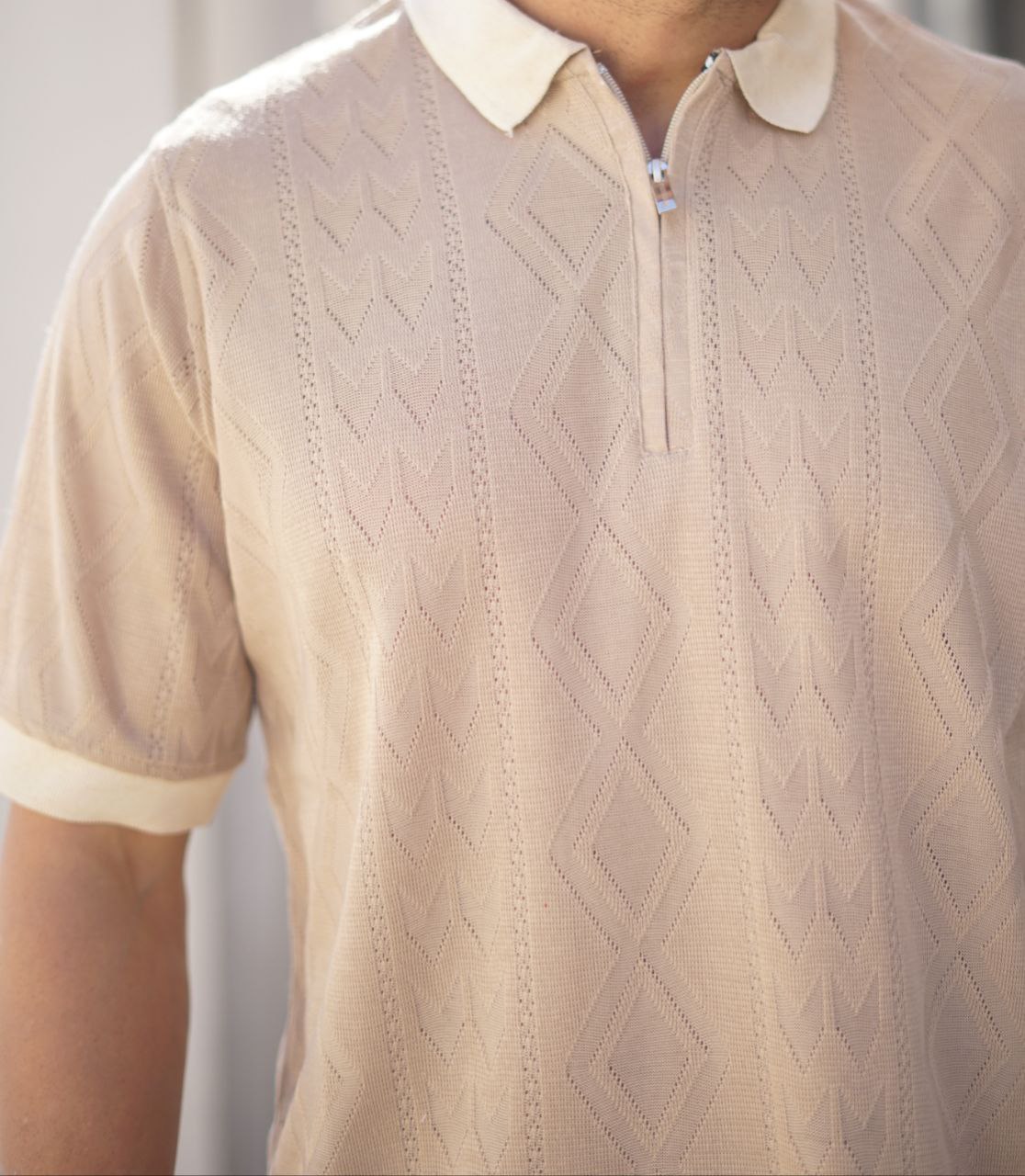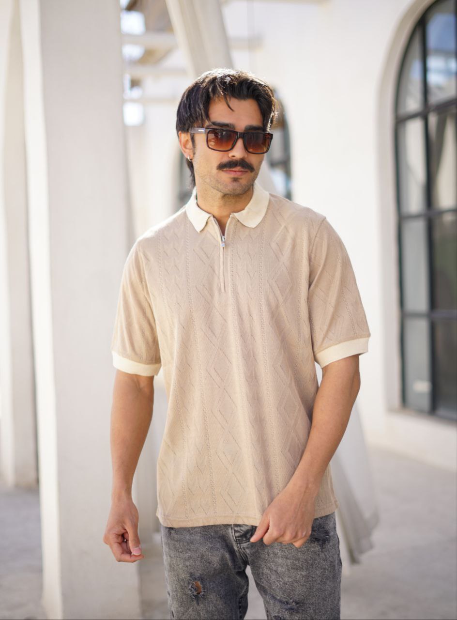 پخش و خرید عمده پولوشرت مردانه یقه نیمزیپ (بافت ظریف طرح اسکاج)