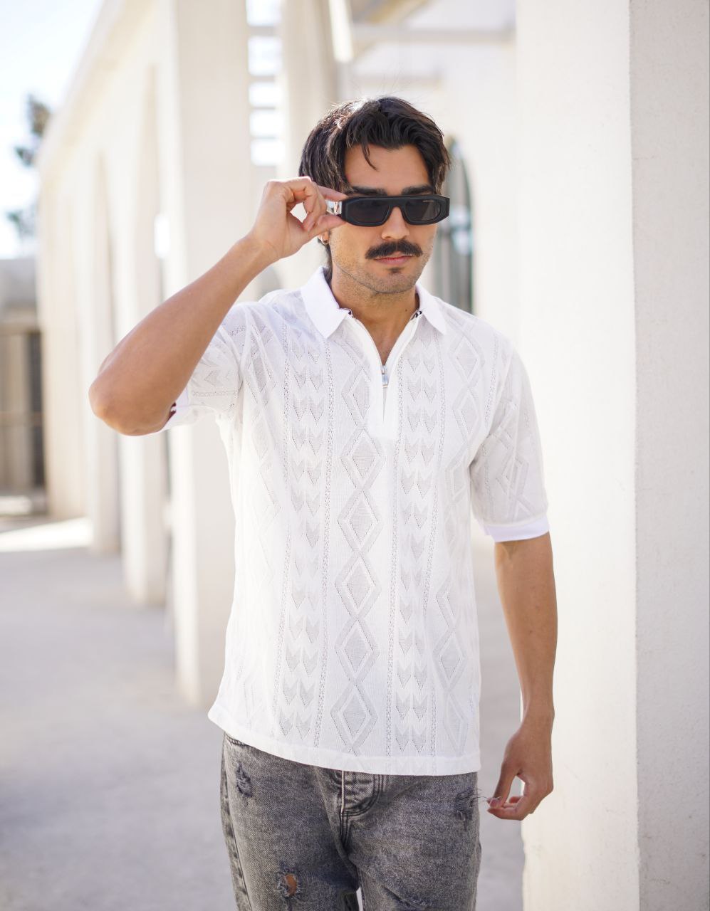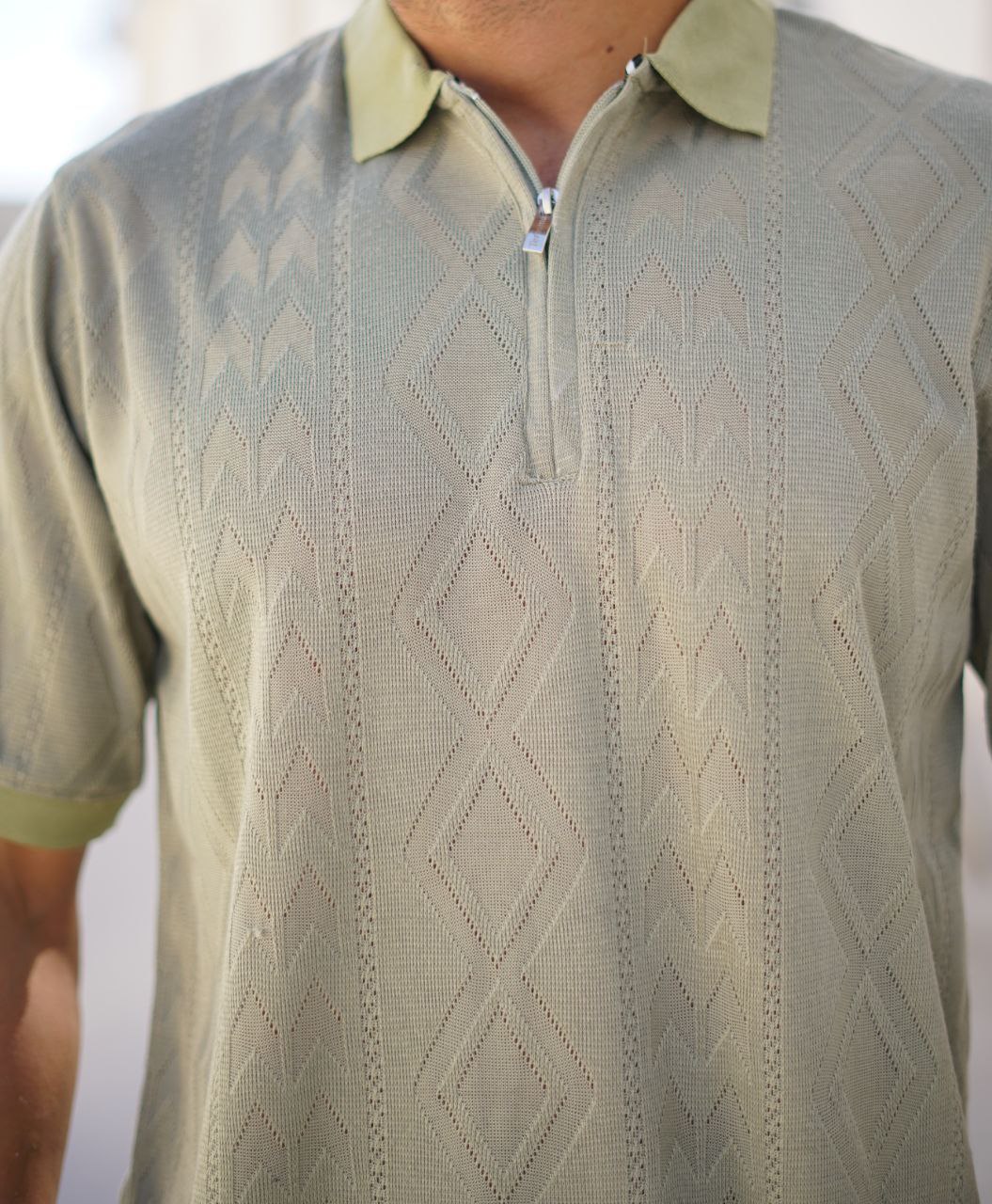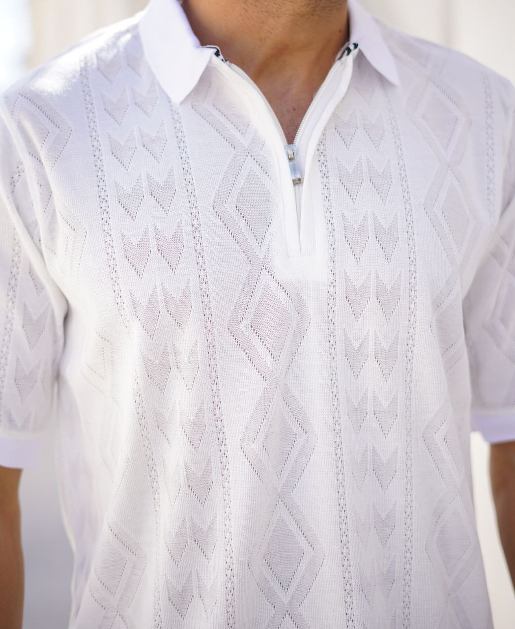 پخش و خرید عمده پولوشرت مردانه یقه نیمزیپ (بافت ظریف طرح اسکاج)