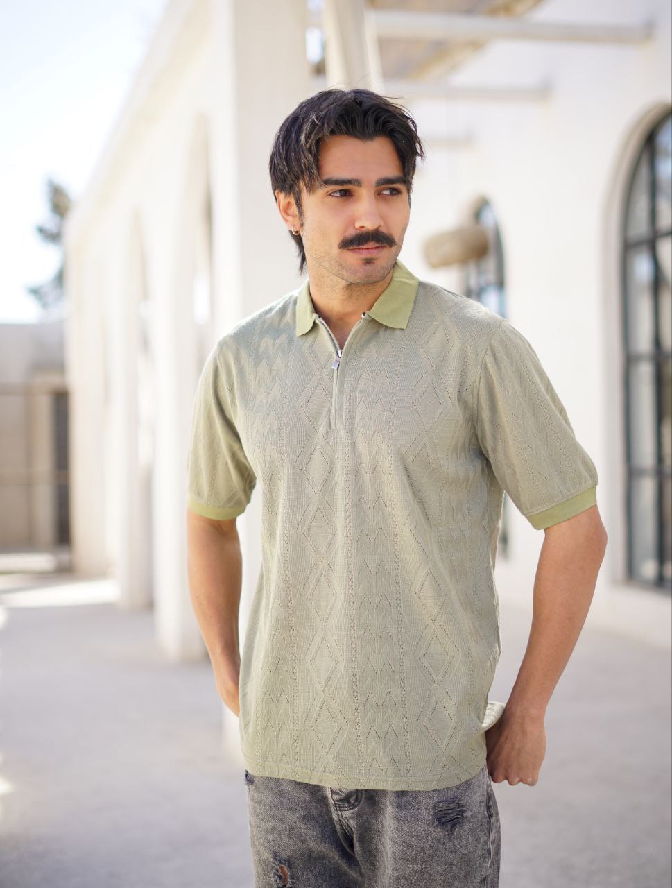 فروش عمده پولوشرت مردانه نیمزیپ بافت طرح اسکاج؛ انتخابی لوکس برای بوتیک شما